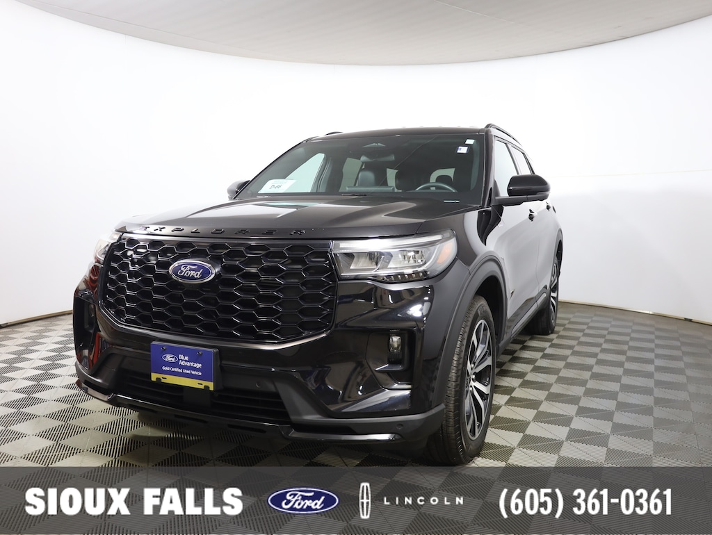 Turn up the excitement with this Certified 2025 Ford Explorer ST-Line, now stealing the spotlight at Sioux Falls Ford Lincoln! Dressed in sleek Agate Black Metallic, this Explorer brings aggressive ST-Line styling, modern tech, and confident capability together in one seriously sharp SUV.
